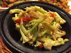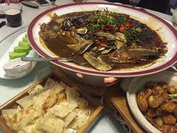 新开的一家店,三个人点了几个菜,招牌牛蛙,手撕包菜的味道一般,菜量也不大,招牌麻婆豆腐不错,很下饭。疙瘩汤分量比较大,花之林一绝,就是在一砂锅里下上饺子和碎馍块,搅在一起其实就是一道主食,这个味道偏酸辣。总体菜价格都不算太贵,菜味一般,上菜速度不算太慢,就是服务员不是特别热情。…ดูเพิ่มเติม