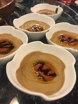 一家喝鹅汤吃鹅肉的餐厅,店内不大,但是装修的还有些意思。吃的方式类似于火锅,有自助料碗区。一锅浓浓的竹荪汤端上来,香气扑鼻。可以先喝汤然后涮菜,有凉菜,卤味很不错,鹅翅鹅掌卤的很到位,味道很好吃。整体味道很清淡。主食有饺子,红糖锅盔。就是餐厅位置比较隐蔽,高新区高新三路还得向西走,路南有个停车场,后面才能看到这家店,不是特别好找。…ดูเพิ่มเติม