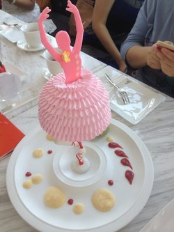 首先感觉它家的位置还是很醒目的,从飞碟馆往o'plaza走的过程就能看到,正好在麦鲁小城(深航飞机头)的上方,从飞碟馆门口的创意广场沿着楼梯走上去第一家就是啦。在店门口就感觉到了透亮素雅的小清新风格,进到里面感觉人不多(虽然是周末),显得很宽敞,不过每一处装潢和摆设都显得很精致很用心,猜想有些小摆件可能是老板张丹丹从国外搜罗回来的吧。那些摆在橱窗里陈设的蛋糕甜点,一个个都造型精美,像艺术品一样。不知怎么的,看着琳琅满目的各式甜点就回想起《玛丽皇后》里玛丽在凡尔赛宫穷奢极欲,尤其是享用一盘盘甜点的情景,里面被誉为“少女的酥胸”的马卡龙得以完美呈现,M63毕竟不能跟皇宫比,但唯美的风格还是亦步亦趋的。等人齐了就开始上点心了,美女店长给我们介绍那些经典款点心的原料和制作工艺,很是惊异糕点师的想象力和创造力,当然也为糕点师精湛的工艺折服。大芒果:是芒果的色泽芒果的造型,不过是将芒果打成浆后加了一点面粉塑形(不知道是不是面粉有点忘了),特别软,一勺下去就到底,味道很酸,有点像芒果酱,但还是能吃出蛋糕的味道。蛋糕上面还点缀着几颗芒果丁,好像没有这个蛋糕酸。诺特:记得midtown cake有一款类似造型的叫“女神”,但听说M63的诺特还是工艺和口感都不太一样。这款蛋糕采用了红酒和巧克力做夹心,味道很特别。3A女人:也叫大苹果,造型像苹果,但外皮绒绒的纹理加上浅粉的色调又像水蜜桃,外表相当具有迷惑性,开始以为只是一个cake做成苹果的造型,可以直接切着吃了,不想是要两个人配合用叉把苹果盖揭开,里面才是蛋糕体(采用苹果apple、芦荟aloe和牛油果avocado做馅),据说对女人美容养颜调理都很有益处。BTW,这个“苹果”的外壳是白巧克力做的,是不是萌萌哒?跳舞巴黎:这个一上来就招来大家集体惊叹和一阵狂拍,听店长介绍,这个用奶油挤出来的带褶皱的芭蕾舞裙,要做出来是需要灰常深厚的技术功底的,店长本人就尝试过数次都失败了,当然藏在裙摆后面的面包才是最好吃的部分,听说是用酵母发酵的,面包很硬,切起来都很费力,不过确实很劲道,而且面包的麦香很浓郁,反正不是外面一般面包店的那种泡打粉做出来的面包能比的。南瓜忌廉汤:感觉很法餐的赶脚,用一个和食物体积相差巨大的盘子盛放一点点精致的点心,不同之处在于这个毕竟是汤,所以中间的三文鱼是被满满的南瓜忌廉汤包围着的,南瓜忌廉汤挺粘稠的,南瓜羹和奶油的配比比较合理,属于咸中带甜的那种,不腻,很暖胃。剧院:midtown cake家叫竹子,M63家号称是有12层(真看不出来),而且号称用的它家最贵的红酒巧克力等的夹心,不过虽然味道还不错但没感觉出什么特别出来。它家的凯撒沙拉真是目前吃过的最好吃的沙拉,听说他们的沙拉酱是自己用蛋黄奶油橄榄油等自己调配的,而且经过反复测试口感,所以比别家采用成品沙拉酱做出的沙拉好吃的多,只是炸蒜的味道是有点重啊。它家的马卡龙造型挺好看的,口味可选很多,五彩缤纷,而且很特色的有一个心形的马卡龙很惊艳,味道感觉不出太惊喜,反正各种甜,只是没那么腻,真的还好。它家一般人都比较少,适合情侣靠窗吃吃甜品看看欢乐海岸的风景,二楼装点的更加文艺,还有包房,可以供土豪开生日party(我们刚好碰上一群在楼上开party的),听说包二层最低消费5000~6000,会有定制菜单噢。…查看更多