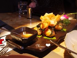 泰国菜吃了不少,朋友初推荐这家时,并未想到会有多大的惊艳。地点较偏,7号线花木路站出站就是喜马拉雅中心。泰谷坐落在B2,不显眼,但是也不难找。推门而入就被室内的环境吸引,古朴典雅,处处透出店主的用心布置。从壁画到桌边的小摆件,都充斥着浓郁的东南亚风情。因为人多,所以坐的是桌子。旁边也有小桌可以盘腿而坐,配有金字塔形的腰枕。金钱包 68元:造型略像油煎馄饨,整个大虾打碎后包入脆皮中,沾上酱汁入口,酸甜弹牙。青木瓜沙律 38元:青木瓜口感清脆,配上辣酱和辅菜同食,香辣可口。虾饼 65元:每一家泰菜都会有虾饼。新鲜的虾肉配以面包糠,炸到火候刚好。搭配酸甜的泰汁,开胃又可口。建议这个菜和金钱包择一点就可以了,食材相似。个人推荐金钱包。芒果炒牛柳 68元:芒果切条与牛肉同炒,口感鲜嫩。柠檬鲑鱼 138元: 柠檬和各式香料搭配鲑鱼同煮一锅,尝一口汤,酸中带有香料的清香和椰浆的清甜,鱼肉酥而不烂,入味刚好。冬荫功 68元:冬荫功的好坏是检验一家泰菜馆的唯一标准——by喵。一直相信如果一家泰菜馆连基本的冬荫功都做不好,必然不会让人对别的菜有所期待。泰谷的冬荫功不会让你失望,食材新鲜,酸辣可口,回味悠长。咖喱皇炒青蟹 188元:蟹是按例上的,上桌后发现蟹的分量很足,个头小壮硕,蟹黄蟹膏和咖喱融在一起,拌上一碗泰米饭,超下饭的。还有猪颈肉、柚子大虾沙律、椰奶鸡汤等也都十分推荐,特别是椰奶鸡汤,汤头清澈鲜美,鸡肉嫩滑,下次去还会点。店里的香茅汁原汁原味,如果不知道点什么喝的不妨一试。…查看更多