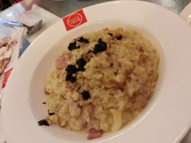 铺面干净明快,座位不算挤逼!铺头到处可以见到可乐的身影!我和囡囡最爱的:朱古力心太软!朱古力烘的旦糕入面是热朱古力熔浆,配合又香又软又有少少脆的朱古力旦糕一齐放入口中,滋味系:非常感动 的感觉!有一种身心都熔化的感觉!伴住呢个旦糕的旁边系忌廉加雪糕,吃一口心太软,再吃一口忌廉雪糕,滋味非凡!呢个焗饭,我最爱!将D黑松露同D饭捞晕,香味扑鼻,入口香浓!正!