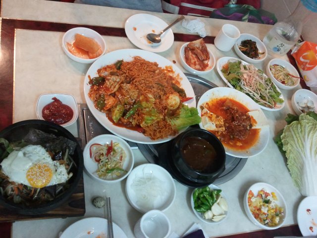从家去比较远,下车后还要走比较远的路。店铺比较细,环境就是大排档甘。老板都几热情,烤肉是在外面帮忙烤肉,再切成细细块,端给我们吃。菜式分量都很足,超年糕比较大份,足够2个人吃饱,面条就比较普通的,不过酱汁味道不错,李里面的年糕不是很多,有些野菜,墨鱼丸之类的,都几好吃。烤肉烤的很香口,外脆内香嫩,配上酱料吃特别好吃。…查看更多