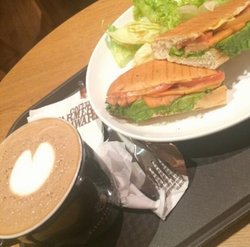 新约士开在黄金城道上,店面不大,环境很不错。正好约客户早上谈事情,由于自己早到所以选择来这里吃个早餐。比较喜欢他家的鸡肉三明治,面包是现烤的,外面稍微有点硬,里面软软的,搭配上烤的嫩嫩的鸡肉、生菜和番茄片后变得非常营养美味。…查看更多