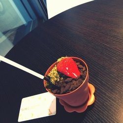 彩色盘 LA PALETA他家开在古北,环境好,很适合劈情操的,我超级喜欢他家的甜品,选择多多,这款类似于盆栽,巧克力粉很多,口感浓郁,上面搭配一个超级大的草莓,看上去就很有食欲哦…查看更多