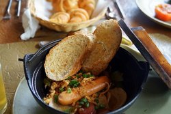 香榭丽西餐厅他家属于中西合璧的,开在酒店里面,生意很好的,价格比机场实惠,我们点了一个套餐,里面有德国香肠,比较有嚼劲,搭配了鸡蛋,还不错,面包有一点点硬,可能符合老外口味的…查看更多