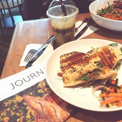 Journeys cafe and Restaurant他家开在金桥附近,环境好,很清静的,和闺蜜一起去的,我们点了一份蔬菜色拉,搭配金枪鱼面包,面包有很多芝麻,很新鲜的,喷喷香,金枪鱼热量低,一样好,而且摆盘很精致的…查看更多