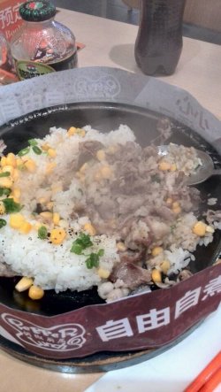 又来胡椒厨房了·今天有点奢侈,点了双拼~呵呵~【照烧鸡+(没记错鱼的品种的话应该是)鳗鱼】双拼。最喜欢的是里边的玉米粒,每次都会先选出来吃~粒粒都很Q里边的鱼处理的一般,有一点鱼腥味~对于我这样爱吃鱼的来说,就无所谓了~听着鱼在锅底煎的吱吱啦啦的~瞬间食欲大增~鱼没有刺~软绵~照烧鸡上来的时候局部有点血丝~没关系~这在锅里一样吱吱啦啦的一小会就可以吃了~鸡肉很 嫩滑~容易消化~还要了可乐~其实应该不要的~这样快餐店的可乐都是可乐糖浆兑的~味道和瓶装的不一样~这样的口味淡一些~花了我50多大洋啊~…查看更多