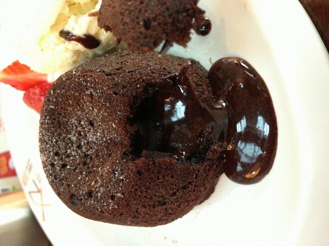 正佳那家店倒是去了几次,这一家店第一次来,晚上十点多都有营业。团购的9.9元的朱古力蛋糕,也叫熔岩蛋糕吧,等了好一会儿才上来。熔岩蛋糕其实也叫半熟蛋糕,这个蛋糕外面很酥,里面都是流心,有浓浓的朱古力及黄油的味道,有点甜,不过配合雪糕吃很棒。服务很好,不断的帮忙添加柠檬水。…查看更多