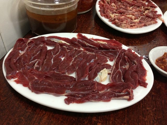 是连锁牛肉火锅店,位置不算很显眼,晚餐时间人也不算多,有阁楼,不过没有开放。点了苦瓜黄豆牛骨锅底,上来只见苦瓜黄豆,是不是牛骨不得而知。大份的牛腩38元钱,份量足,不过用料不好,掺杂着许多其他部位的牛肉。牛筋丸算很弹牙,味道也不错。脚 只肉小份的23元钱,味道还不错。另外点了白菜,河粉,豆腐什么的,两个人消费了100多。算是性价比较高的吧。…查看更多