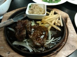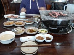在五道口很出名的韩式料理店,可以吃烤肉,也可以吃韩餐。里面很大,有韩式座位,平时还播放韩国电视节目,店员一半以上会韩语。经常能在里面看到韩国人。基本上一坐那儿,过一会儿就有一堆的小菜铺满桌子,泡菜,鱼,泡菜饼,还有免费的南瓜糊和大麦茶等等。点烤肉送大酱汤。烤肉可以自己烤,也可以让他们给烤好,裹上蔬菜,粘上特制的酱料,超级好吃!!!这里的冷面、炒米条之类的普通韩食也很正宗,和平时在其他店里面吃的不一样,价格可以接受,不是太贵。肉和菜什么的可以慢慢点,我们经常点多。。。到这里还可以尝尝他们的米酒,绿瓶儿,米白色的,甜甜的口感,但是也不能喝多,微微上头。…查看更多