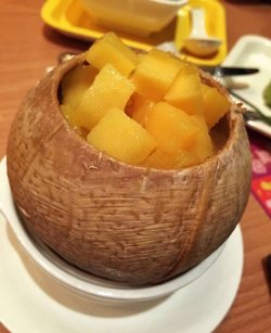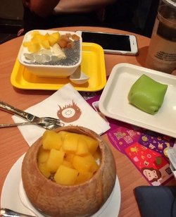 在朋友的推荐下吃了下芒果冻椰皇,新品哦,以前从未吃过,上面满满的芒果肉看着还是很好吃的样子,芒果还是老味道,甜香软糯,这个季节的芒果甜到让人觉得有点腻了,下层的椰子肉比芒果还要甜香,真是一份甜度很高的甜品哦,但总体来说,是我喜欢的甜品,有创意。…查看更多
