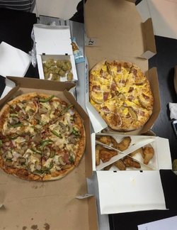 达美乐的披萨真的是太喜欢吃啦,家里来小伙伴之前赶紧的去店里面买的,一只超级豪华披萨,12寸的,加了厚芝士,感觉馅料很丰富,这款是有洋葱的,洋葱比较生涩一点,青椒还有一点辣,肉很多哦,土豆皮萨比较喜欢吃,12寸的,薯角口感非常的香脆,面饼也很柔软。…查看更多
