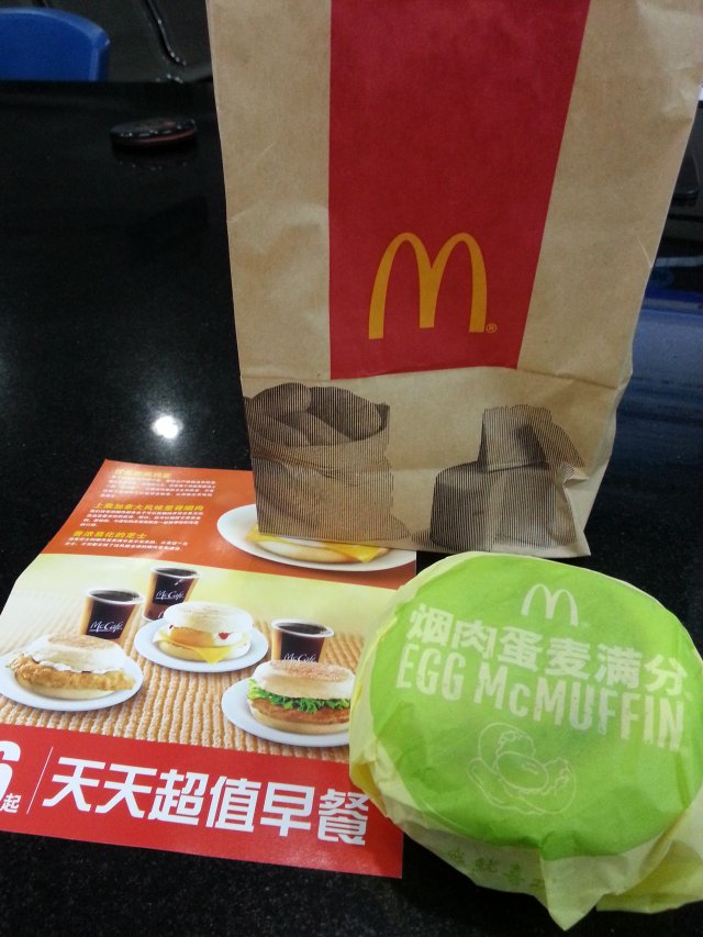 M记的免费早餐,有一个麦满分,虽然要排队罗,但是有个免费早餐吃下还是OK的,而且排队的时候仲有热水贴心奉上~~个包感觉是粗粮,但是我几中意呢种轫的口感,够健康,加上中间件咸感的烟肉同煎鸡蛋,种种身体必备元素都齐全,为早上加力加分~~…查看更多