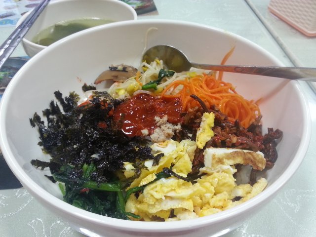 每次路过时尚天河的电梯位都见到呢间店人山人海,某日专门去试下;我点左一份韩式拌饭,饭的份量唔多,配菜就十分丰富,有红萝卜丝,紫菜丝,鸡蛋丝,泡菜丝,再加上少许辣的拌饭酱,颜色相当缤纷,拌匀来吃,酸酸辣辣,几开胃~~同事点左饭团,感觉上一般,不及同样位于时尚天河的另 一家韩食馆:韩含屋的出色。…查看更多