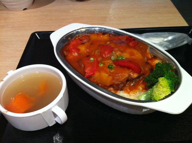 周末去正佳行街,见到大家乐有位,加上有张优惠券,所以入去帮衬~1. 蜜汁叉烧五宝饭:一个好似花盆一样的饭碗,饭量约莫一碗吧,配菜都几丰富,有2. 一哥猪扒焗饭:蛋炒饭底,配上酸甜开胃的蕃茄,洋葱,菠萝,非常清新,加上一件成人手掌甘大的带骨猪扒,相当满足啊 配餐可选汽水或汤,其实两者都是一般般,汽水无味,汤清淡淡,最过份是杯免费提供的白开水,因为用胶壶盛装的,所以一大阵臭胶味,饮左一啖就想呕了。…查看更多
