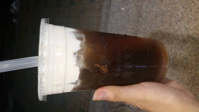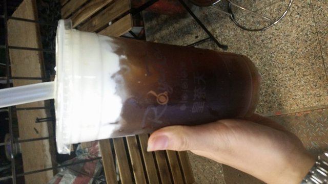 之前一分钱秒杀的,选他本来是因为离我家比较近,方便。于是这天晚上路过就兑换来试试。这家店店面不算大,但是很干净!门口还放了一张小桌子和两张椅子,方便客人在等饮料的时候坐。挺贴心的。茶类可以六选一,于是选择了海岩珍珠奶盖,乌龙茶底。买的时候其实没什么期待,没想到拿到手发现奶盖很浓稠好香!打开挖了一口吃,不错!奶盖够绵密,奶味很浓,咸咸的不会很腻。而且奶盖的分量比贡茶还多!底下的珍珠不会很有嚼劲,但是吃起来还不错。口感有点像薯粉。大爱!终于在家附近找到一家好喝的奶盖茶了!开心!另外要赞一下服务员,态度很好!喜欢。。。…查看更多