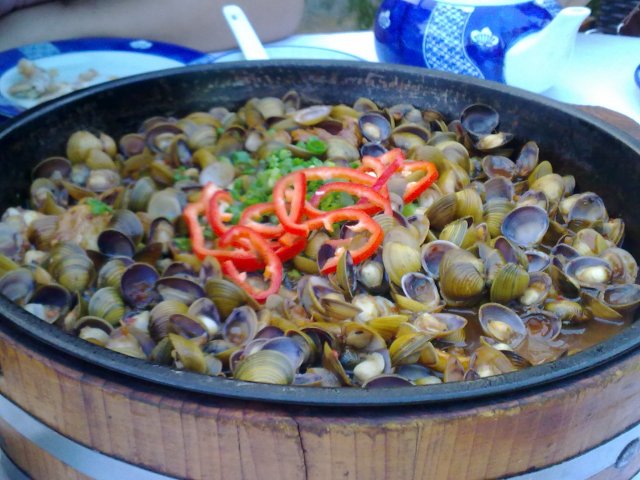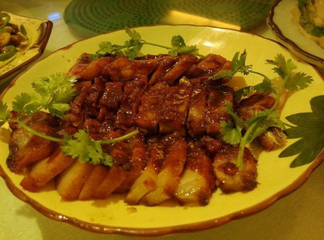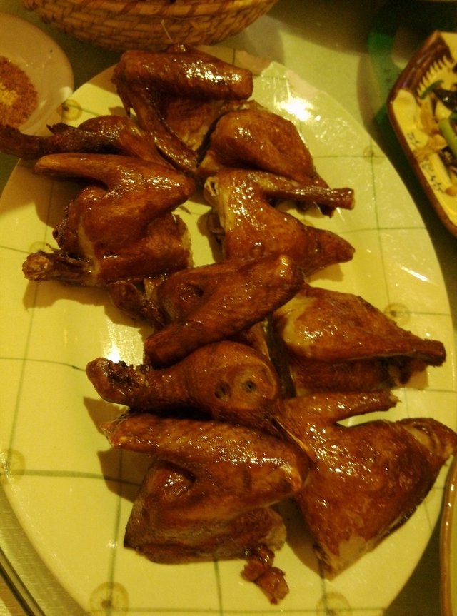 我们好早就到啦,就选择了楼上露天桌子。还挺优雅的。我同事为了吃芝士番薯,就早早叫我们到这里啦,她说就是为了吃这个,以前她每次过来都吃不了,因为晚了就没有啦。这就是番薯挖个洞,弄点芝士去局的,味道甜甜的,我觉得应该是甜品,最后吃才行啊。铁板沙蚬:这盘蚬好大盘啊,量又多,说是这里的特色菜,我不觉得有什么特色啊。味道一般般。乳鸽:一开四,肉嫩多汁挺香的,皮不够脆。花雕鸡:大家都以为是热菜,上来才觉得上当啦,是冰的,酒的味道没吃到,就只吃到冰冰的。鸡肉不够香。也许是我们太早到啦,想吃那烧肉都还没出炉啊。可恶啊。…さらに見る
