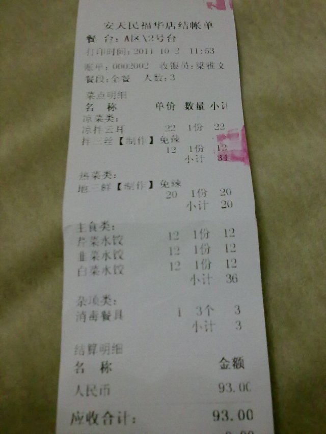 我原本说请舅舅、舅母去喝茶的,因为舅母是东北人,她比较喜欢吃饺子,所以就来到这里啦。就我们三个人,只点了几个饺子,两个凉菜,一个热菜。凉拌云耳(22元):醋放得好多啊,真酸,但挺爽口的。拌三丝(12元):点了免辣的,舅舅吃不了辣。觉得还行吧。地三鲜(20元):所谓地三鲜就是茄子、土豆、青椒,这菜甜甜酸酸的,一般般。芹菜水饺、韭菜水饺、白菜水饺(12元/份):这里的饺子比别的地方的饺子好吃多啦,多汁。…さらに見る