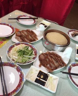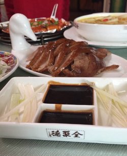 全聚德里面的片皮鸭超级好吃的,鸭子都是现烤现场片皮的,鸭皮上面看上去油油的,吃起来一点都不肥腻,鸭肉很绵软细嫩呢,吃起来非常的香脆哦,鸭肉十分的鲜嫩,葱花丝,黄瓜丝切的特别细嫩,包裹在面饼里面吃,好吃到停不下来。…查看更多