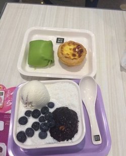 一个人吃的满记甜品,超级喜欢他们家的雪山蓝莓了,上面有好多一小颗一小颗的蓝莓哦,十分新鲜,用的材质质量很好,吃起来酸酸甜甜的,冰激凌球也是蓝莓味道的呢,榴莲班戟也超好吃,里面榴莲肉很厚一层,蛋挞软软的,一个人吃这些还是挺有满足感的。…查看更多