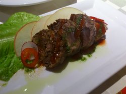 【位置】崇文门国瑞城三层靠北边的地方,周围都是吃的,所以很好找!【环境】地方挺大,灯光偏昏暗,可能就是为了制造浪漫气氛。桌子的间距都比较大,私密空间足够了,很多都是沙发坐,很舒服!最适合情侣来了!【服务】服务还可以,不能说是特别的好,就是基本的服务都做到位了。不过,我们去的时候好几桌过生日的,会有服务员唱着生日歌突然出现,然后送上蛋糕之类的东西,还是挺有意思的!【菜品】可以零点,也可以点套餐,我看大部分人都是点的套餐!88元的(只能周一到周五的中午点),138元的,178元的。88元的没太注意,138元的178元的基本一样,就是主菜那里不一样。(奶油芝麻面包):味道很不错哦,尤其是蘸着那个酱吃,特别香!那个酱的味道很浓,里面有很多蘑菇,就像是浓缩了的奶油蘑菇汤!刚上来的时候小盆子还是烫手的,可能是放在烤箱里烤的。(翡翠牛肉沙拉):牛肉做的很烂,有的地方还有一些筋,上面的酱是甜口的,味道挺好的!(焗海鲜时蔬沙拉):上面的部分是土豆泥混合着虾,但是虾很少,下面是一块山药,也是甜口的。(法式蜗牛浓汤):汤的确很浓,味道挺好!就是蜗牛太少了!:((百香果酪):这个在菜单上叫餐中饮料,不过一开始就给上了,小小的一杯,味道很浓,感觉应该没有兑水。喝完了还可以再加!(意式松茸牛排):要的七分熟,一大块牛肉,不知道是哪个部位的,反正挺厚的!切的时候不是很好切,里面还有红的,看起来比较新鲜。但是味道很淡,不适合我这种口味重的人。上面的是松茸吗?我感觉像是梅菜扣肉里面的梅菜!(香烤牛小排):有两块牛排,没有问要几分熟的,应该就是全熟,很入味,味道不错!(西堤臻烤牛排):这个是138套餐里的,也是全熟的!第一口吃下去有点像炖排骨,做的比较烂,也很入味。总之比那个松茸牛排容易切也容易咬。(鲜果提拉米苏):跟一般的提拉米苏一点都不一样,鲜果也没看到,就是有点类似草莓的物体,特别酸!上面一层是奶油,下面是抹茶蛋糕,很奇特的甜点!(热情夏威夷果昔):味道很浓,也是没有兑水的。就是把水果直接弄成泥状,喝出了猕猴桃和香蕉的味道,可能还有别的水果!…查看更多