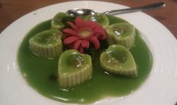 这家店的菜做的都很精致的,菜的名字很特别,什么碧玉妆成,菩提香袋、黑椒墨玉这些菜取的名字都挺有诗意的!吃上去的口感也不错,碧玉妆成这道菜的造型很不错,六个绿色的爱心,听店家的服务员说其实这六个爱心就是用豆腐做的,上面绿颜色的汤汁其实就是蔬菜汁给淋上去的!吃口么非常嫩滑,值得推荐下!…查看更多