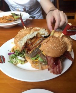 拉亚汉堡 LAYA BURGER 拉亚汉堡 2015-08-23拉亚汉堡吃过几次,知道他们家的汉堡很大,所以现在两个人同行的话,一般都是点一份汉堡就可以了,火烤培根牛肉汉堡,培根做的很赞的,不老不嫩,香的很啊,牛肉也是超厚实的一大块,喜欢吃的时候从上到下一口咬下去,味道特别饱满,肉香味,芝士味,蔬菜味,层层叠加,馥郁难挡。…查看更多以上食評乃用戶個人意見 , 並不代表OpenRice之觀點。讚好分享拉亚汉堡 LAYA BURGER 拉亚汉堡 https://s.openrice.com/KtbT1008AiF00檢舉 張貼 評分5味道5環境5服務5衛生5抵食推介美食火烤培根牛肉汉堡¥65用餐途徑堂食