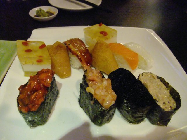 由于LG嘴馋想食,于是来此打包回家慢慢叹不煮饭了。此店原本主打饮料的,后来兼做寿司外卖,结果现在倒好像以寿司搭饮料卖一样。有套餐挑以及散点寿司的,套餐是寿司外搭奶茶一杯,寿司有五块可挑,2.5元的只可挑一块,2.5元以下任挑4块加一杯中奶茶就10元。其实这个套餐还是蛮划算的。但是由于我不喜欢要奶茶,只好散点寿司,青瓜小卷1.5元/2块,玉米沙律、海草寿司、蟹柳寿司、玉子寿司等都是1元/块,红蟹子寿司是1.5元/块,黑蟹子、吞拿鱼沙律、螺肉寿司、芝麻八爪鱼寿司、鳗鱼寿司等都是2.5元/块,相思情人等相对贵一点点的也有5、6种选择,还有净食的芝麻八爪鱼、海草等5元至6元,总体感觉寿司的体积有点迷你,不过米团面上的馅都不算少,饭团有点醋味过了一点点,不过按性价比来说是可以的,能接受~~~ 希望醋味有些改善就差不多。卖了30大洋,两人吃得饱饱的~~…查看更多