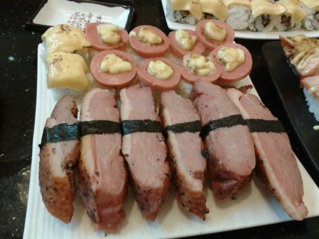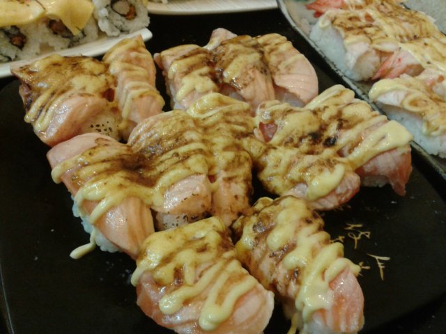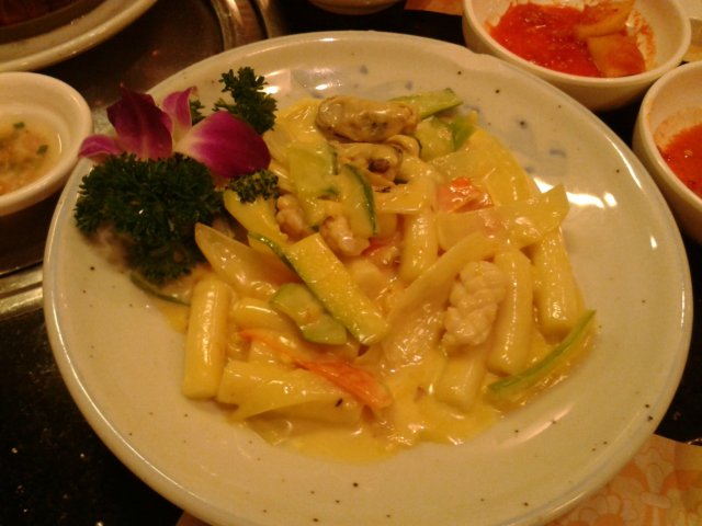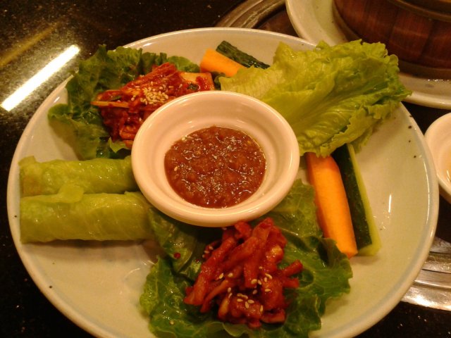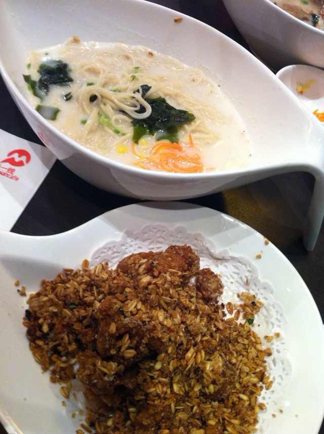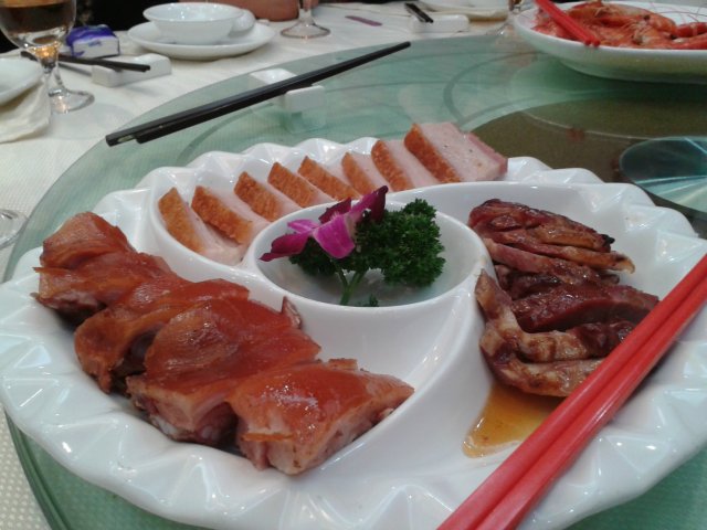 我们点了炸番薯,还没来得及拍就抢光光了···因为很好吃·~~手快有手慢没有~~哈哈····挑了一条快10斤重的鱼,分成4碟生鱼片,再分成一碟鱼腩鱼头·····一锅焖烧鱼,一锅发财猪手·····味道还是不错滴······少不得点了一碟青菜···姜汁炒芥兰····