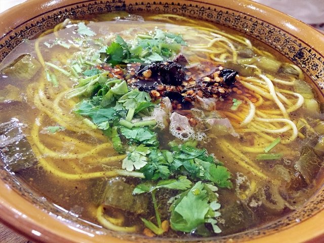 河北区五号路那家店自从去过一次,就对蛋子烧饼念念不忘啊,可惜不是每次到店都有的,卖完了可就不赶巧了。凉菜、拉面和牛肉都不错,貌似夏天还加了刨冰,离得近的可以去试试。群里聊天的时候偶然发现有亲分享了个0元单,正巧也是这家拉面,在和平开了分店,果断抢一个来探新店啦。地址指引:新兴路与鞍山道交口,距离总医院很近了,周边的顾客应该不少。团购的0元单拉面,原价是10米一碗。试营业期间能做到免费的店铺并不算多,能这么豪迈也是极好的啊。貌似是加盟店,总店应该是在大港那边,没尝过味道,所以不好比较。传统的黄汤拉面,应该是大众可以接受的那种。面条可以要普通的粗细,也可以要毛细,韭菜叶儿等不同粗细和宽度的面,造型和口感也都有所区别。汤上飘着油花,面里撒了点牛肉粒,加了香菜和辣椒油之后就端上桌啦。有淡淡的咖喱味儿,汤是可以喝的,口不会太重。面条的软硬度掌握得也不错,很劲道爽滑的口感。要了份凉拌菜,用小碗留一点酱油醋汁,把面放进去拌制吃也别有一番风味,瞬间变凉面,哈哈。店里的食客不少,大部分应该是住在附近的居民吧,平时不想做饭了来上一碗面吃,经济又实惠。卫生环境不错,大厅看起来也很亮堂。有机会还会再去哒~…查看更多