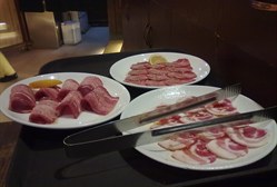 第一次吃金钱豹就是在这家了,感觉还不错。于是乎等了一个多小时,从饥肠辘辘等到了肚子没感觉~~~好不容易进去了,当然要大吃特吃。我是大胃王,吃自助绝对是够本的(*^__^*) 嘻嘻……东西品种太多了,我进去都有点晕了,一时间不知道该吃什么。食材都很新鲜是显而易见的,随时都能看见服务员补充食物,很及时,不错。我习惯吃饭先吃蔬菜水果,一直都是这个习惯,哪怕吃这么贵的自助还是吃了满满一大盘子新鲜的蔬菜水果,朋友说我不会吃,可没办法,我喜欢把我认为最有营养的东西放在前面吃,让肚子先吃好的O然后开始吃肉肉。我是肉食动物,看见那么多肉HIGH死了。最爱乳猪和鳗鱼,吃了不少,乳猪烤的相当香了,一口下去就欲罢不能了,太好吃了,到现在都很怀念啊~北京烤鸭做的也不错,不过我吃的那次有点点凉了,我喜欢吃热乎的~~生蚝也是我的大爱,我吃了小半盘子,(¯﹃¯)口水啊~基围虾也要赞一下,个头很大,非常新鲜,好吃~~烤牛排也还行,不过我吃的稍微有点老了~~生鱼片其实也很好,但是怕吃了之后不好吃冷饮,所以只尝了一点。最后吃了不少提拉米苏和哈根达斯,出来的时候肚子圆鼓鼓的~有点不好意思了哈哈~不过绝对是回本了~~可惜人实在太多了,吵死了~~…查看更多