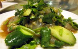 天热点的冷菜里特色拌鲁菜,很开胃,味道也很正宗地道,里面主打海蜇皮和黄瓜,个人还是比较喜欢酸黄瓜的,吃着比较有味道。凉拌海蛰皮非常的爽脆,和切成一块块的黄瓜,再加上白糖调成的醋汁加以调味,酸酸甜甜的口感下非常舒爽。…查看更多