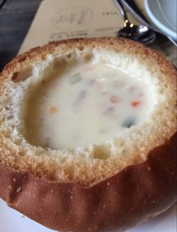国民岳父开的店,必须去一吃,等位等很久,吃下来感觉真心吃的不是美味是人气,创意菜系还是蛮多的,并不完全是中规中矩的,菜名都很文艺,面包蛤蜊汤还是很不错的,汤喝完了面包还是依旧脆口,这点倒是出乎意料。…查看更多