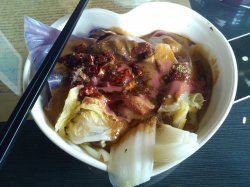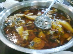 这家新开业时传单发到了单位,一直想着广顾一次,今天终于成行了。这家地点就在天津一中贵州路门对着的沙县小吃二楼,很老旧的小楼,楼梯和屋子都有破损。上了两楼直对着的是厨房,右手边的一间屋是堂食区,堂食区的一角是选菜区,两个冰箱里放着新鲜的材料,它家是按斤购买,不分荤素一律13元一斤,汤分辣和不辣两种,汤可以喝。它家菜品的种类还算不少,比一般麻辣烫多了方便面、乌冬面、拉面等等,但是遗憾的是没有我喜欢的火腿、香肠一类。这次是外带,需加1元小料的盒钱,小小的塑料盒是那种不能微波加热的材料,1元有些贵,不过小料的味道真是不错,主料是麻酱,可以自行调配麻料、孜然、辣椒、蒜等等。我和同事分别买的清汤和辣汤,清汤是清而有味,辣汤是辣的过瘾,材料煮的很到火候,只是可能粉丝类之前都泡过水,煮的有些过了。…查看更多