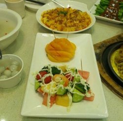 爱•滋味港式融合餐厅这家店开在南京东路步行街上,和朋友逛街后无意光顾的一家饭店,店内环境还不错。他家的芒果大虾色拉不错,色彩丰富,选用了新鲜的芒果、菠萝、黄瓜、番茄、西瓜和大虾做成的,虾肉Q弹,水果水分充足,搭配上色拉酱后味道好吃。唯一就是大虾太少,一份色拉才有一只大虾。…查看更多