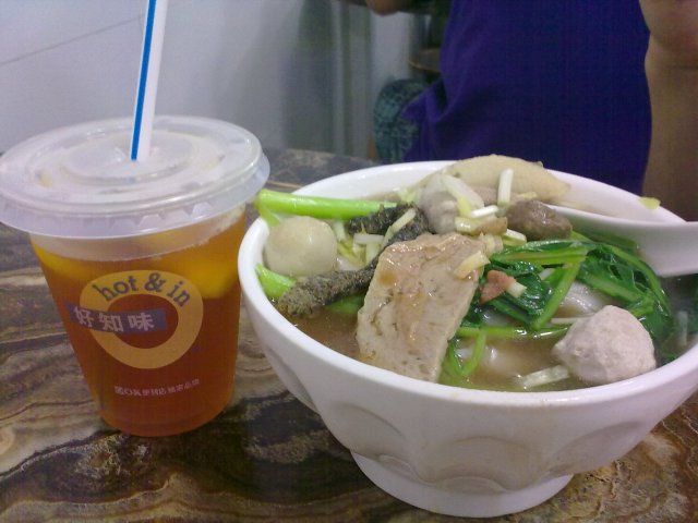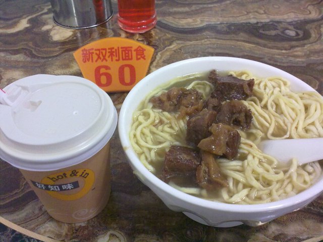 今天下午本来想去吃下午茶的,逛了逛觉得没什么好吃的,反正在公园前,马上就想到来这里吃面好了~~可能过了午饭时间,人不多~~第一次吃伊面是在长寿路,后来朋友带了我过来这里吃,觉得也不错,价钱适中,味道挺好的~~这里的面出名,之前一次来也是吃面,上次就忘了吃什么,这次就要了牛腩伊面,各种肉类伊面都是10元,看上去很多,伊面都是膨胀的,其实分量并不是很多,牛腩也有五六块吧,配有两条青菜,汤底很香浓,可能跟牛腩汁有一点关系吧,牛腩不会很韧,味道很好~~同学点了鱼蛋粉,8元,我看见配料很丰富,据她说,汤底没我的香浓~~…查看更多