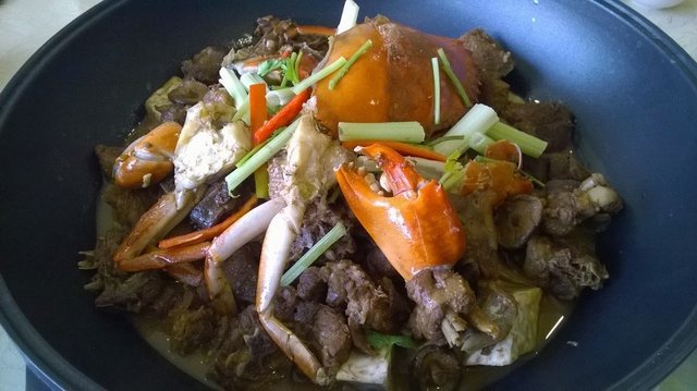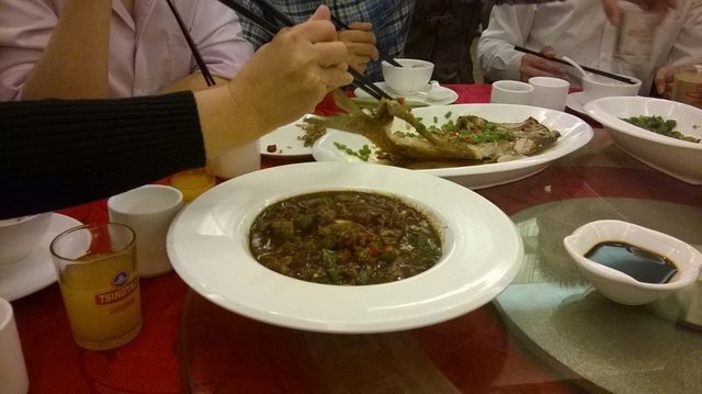 昨天小年夜,堂弟请大家在这里聚餐,我和堂姐晚到了四十分钟,入座的时候发现菜都是热呼呼的,色香味上立马就吸引我俩了;一口热呼的龙骨海带汤下肚,整个人都热起来了,汤浓而香甜,骨头煲得酥软,瓦锅老火慢烤,价格¥20,值得推荐;锅巴配上带皮肥肉,脆中带软,软中带酥,酥中又有特制辣酱的香味,让一向不喜欢吃脆食的我忍不住的重复下筷;剁椒鱼头是堂弟特意点的,鱼肉鲜嫩,剁椒的辣味加上豆皮的鲜味通过小火,慢慢的煮入鱼肉之中,是不错的下饭之选;清炒土豆丝和小炒田鸡肉也是不错;饭也不错,在昨天这种寒冷夜,吃起来也一直热呼呼;唯一美中不足的是血鸭,血下的不足量,吃起来只有鸭味而没有血的配合了,鸭肉有点太老,汤汁没有收好,不如我第一次做这道菜时的口味;对于他们服务特别要称赞一点,都是选择年纪比较大的中年阿姨们,他们在服务中都带有一种恭敬谦卑的态度,很是小心,笑容让我觉得特别亲切,就像邻家的婶婶;…查看更多