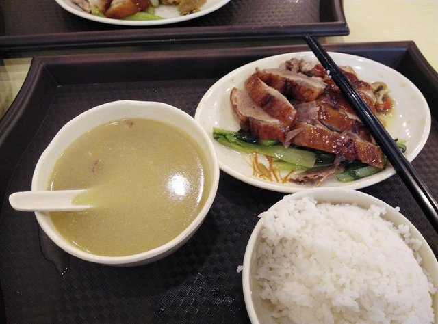 地好滑,进去好像溜冰。环境好一般。点了古法烧鹅,鸭腿饭,叉烧米线。烧鹅,鸭腿还可以,不过好油腻,下面一层油,把咸菜和青菜浸的都好油。叉烧一般吧,例汤,味道很一般,也好油那汤。总体上没什么特别出彩的地方,很普通一间店铺,没有传说的那么神奇。…查看更多