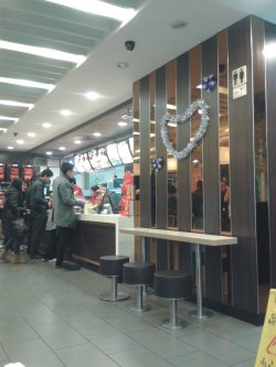 比较小的一家M记,基本上也坐满了人,半休比较简单,不过挺喜欢的,挺清新的感觉。服务员态度还不错,挺热情的。原味烧铁板鸡腿堡:鸡腿肉挺鲜嫩,微辣,有点咸,夹着蔬菜和面包一起吃,感觉也还好,但是沙拉不够多。忘形鸡翅:表皮炸得很脆,一口咬下去,肉质鲜嫩,热呼呼的呢。稍有点辣,在这大冷天的吃完都觉得暖暖的了。薯条炸得比较成功,好吃!橙汁味道比较淡,一般。…查看更多