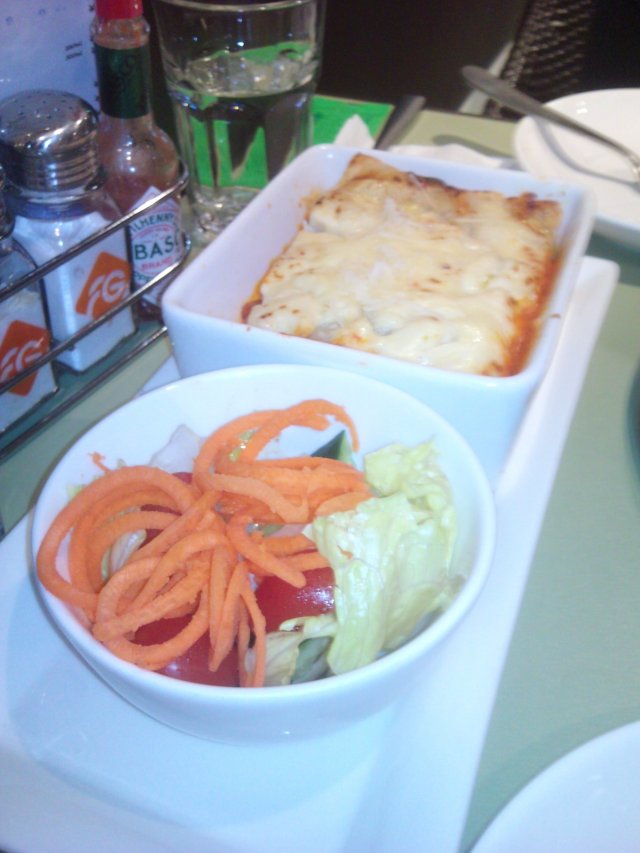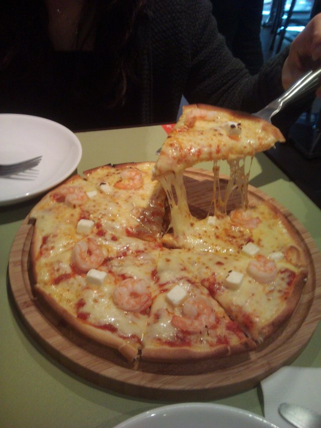 第二次来吃了,话说两次吃都这家。上次吃了5芝士批萨,觉得没有肉,所以这次点蒜香鲜虾批萨咯。还有那个千层面也想试试。还有点了个野莓布丁。蒜香鲜虾批萨,点的是薄装的。希望爆点脆点。想象是浓郁的蒜香味道,结果,一点都木有!好失望。不过鲜虾爽口,拟补了我的失望。牛肉千层面,好像一点都吃不出牛肉吖。面很软滑,口感比较适合老年人。哈哈。芝士,奶油的味道很大。吃一点就腻了。最值得称赞的还是野莓布丁。实在很好吃。下面的白色布丁,味道浓郁。入口香滑。配上上面的酸甜的野莓和流出来的野莓酱。整个甜品是甜而不腻,还可以消济。就算主食再饱,还是可以吃下一大个。哈哈。…查看更多