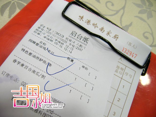 本来粤海大厦楼下的食店,不会太多人!结果要食客经常很满,需要订位!开了两个月左右了!终于去试了一次!两个人,点了三个菜!招牌葱油鸡!还不错,鸡皮很爽口!鸡肉也不粉!还有啫哩状的鸡汁!配料很特别,有芥末在酱油里面!是我孤陋寡闻,觉得很新奇,口感也不错!特色葱油淋鲈鱼!鲈鱼不新鲜,不过也不至于很不新鲜!麻麻地咯。。。还有个香芋煮百合南瓜!椰汁味道很浓郁!可是香芋不粉。。。百合和南瓜都不是我喜欢吃的!人很多,座位编排很密集,犹如快餐店!而且要煮的熟菜,要等蛮久!不过请客聚餐什么的就很适合!…查看更多
