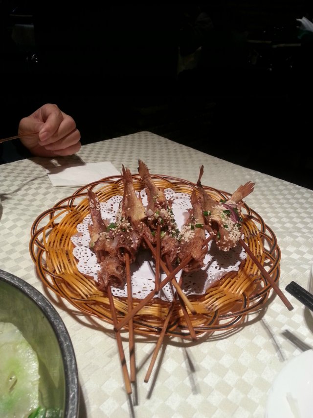 一家以东北菜为主打的餐馆。面积不大,装修比较简洁,环境还不错,也挺干净的。我们到的时候座位基本都坐满了,人气还是挺旺的。点了葱油饼、羊肉串、油炸小黄鱼和饺子。油炸小黄鱼还不错,有8条小鱼,炸得黄黄的,咬上去脆脆的,很香,连骨头都是脆脆的,完全可以吃下去。稍微有点咸,一点也不觉得腥了。…查看更多