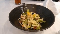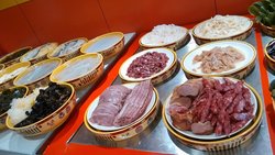 这是一家日本料理,在北二路的荣富饭店一楼,他家外观感觉上很高档,但是细节做的不好,其实一般吧。我们是团购的是四人餐,200多,坐在外面拼了两张小桌子,不是很方便。菜的种类很多,但感觉也没吃头。【高级牛肉寿喜锅】98元,就是日式牛肉火锅,汤还算比较鲜,里面有肥牛,大白菜,蘑菇,大葱等,肉比较少,一般吧。【大龙虾】这个造型颜色很好看,实际上虾是已经脱壳的,就是个摆设,肉已经取出来了,一小条,还没吃出什么味就没了,肉有点干。【红叶特级刺身盛和】100元,这个很好看,有3种左右生鱼片之类的,我本人不太喜欢吃生的,所以没吃,不过看着还行。【方与圆经典寿司拼盘】98元,这个有点像韩国的加州卷和小年糕,就是寿司,外面还有一层鱼籽,味道还可以,小年糕倒是比我想象的好吃很多,里面像是奶油还不腻,挺不错。【盐烤秋刀鱼】20元,这个还可以吧,中规中矩的,朋友说还行,我是吃不出来。【海鲜鸡蛋糕】10元,是小份的,每人一份,蛋蒸的很好看,吃起来也很滑,是温热的,还不错。【水果沙拉】造型好看,色彩丰富,还很贴心的送了四个叉子,有西瓜,草莓,火龙果还有罐头,沙拉酱很厚,比较好吃。除此之外套餐里还有时令蔬菜,炒饭,小拌菜,扇贝等,东西很多,但都是小份的,服务还可以,环境一般,个人觉得团购挺合适的,如果单点有点贵了。…查看更多