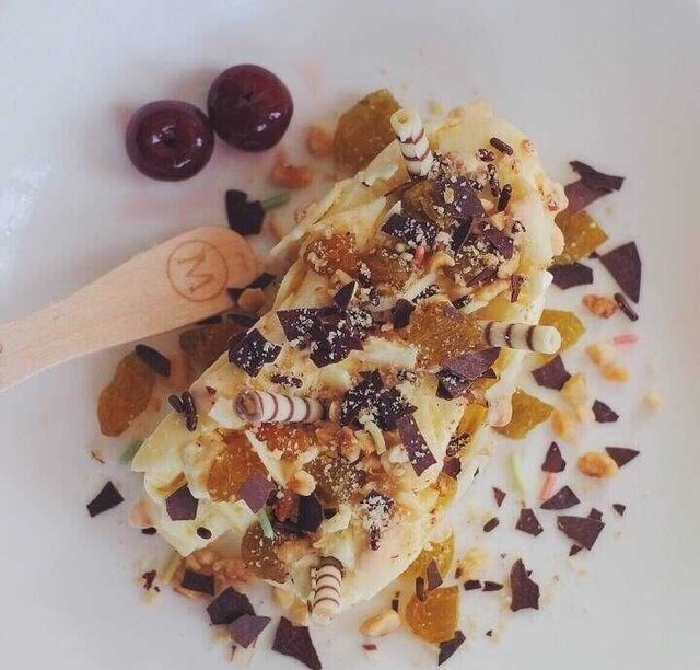新开的梦龙店,一直以为是可以自己对着梦龙来DIY的,后来才发现原来是自己挑选三种口味的食材让店员进行操作,瞬间就觉得可玩性变低啦,白巧克力是今年新品,味道还是很赞的,上面放了脆米,花生和巧克力粉,价格就比较贵了。…查看更多