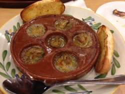 一直没有点过他们家的焗蜗牛,主要是本人对蜗牛一类东西一直很感冒,但是每次看到别人点这道菜,总在想有那么好吃嘛,于是这次点了一份,配上了他们家的蒜香面包,真的不好吃,虽然蜗牛上面有着浓浓的蒜香芝士味,但是真的超油的,感觉就是浸在油里的,而且口感也不好,黏黏的,一想到蜗牛,我就感觉在反胃,不过旁边的蒜香面包还可以,另外还点了薯饼,也感觉一般般,不过沾着番茄酱还算可以。…查看更多