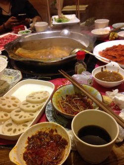 和家人一起去吃的,主要是看到有3-4人的团购,锅底是鸳鸯锅,锅底忘了一大块猪油,汤汁上面飘着一层油,麻辣鲶鱼,貌似是他们家的特色菜,一上桌就看见到一盆红红的,连鱼肉都看不到就看到红辣椒籽,是放山茶油的,味道挺辣的,就是有点油,但是挺入味的,鱼肉很嫩,辣辣的很鲜美,还有就是他们家的空运鸭肠,样子也比较好看,涮进去吃,很脆,不过涮的时间长了就老了,总的来说还算不错。…查看更多