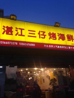 晚上和同事一起去吃夜宵,来到这家湛江三仔烤海鲜,听说蛮有名气的,点了很多品种,烤鱿鱼,味道不错,鱿鱼很有嚼劲,就是有点油,烤扇贝很不错,看的出他们家的扇贝很新鲜,而且上面配的料也很入味,一下子就吃了2个,烤茄子一般般,味道比较淡,而且上面还漂了一层油,蛏子也很吃,和扇贝一样很新鲜,而且一个个个头也蛮大的,里面没有很多土腥气,另外还有他们的椒盐虾,也不错,烤的虾壳很脆,虾肉也很鲜美。…查看更多
