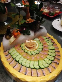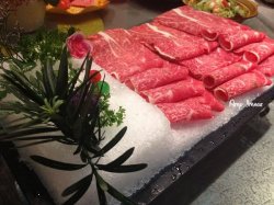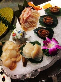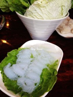 盘超级讲究的火锅店。看,这些新鲜的基围虾,一只只“站立”着,等待下锅。大连活海参,佩服师傅的好刀工,海参片的相当薄,无论是涮着吃(脆脆的),还是蘸着芥末吃(韧劲十足),都是无敌美味[馋嘴] 。小口瓶中徐徐挥发的干冰,烟雾缭绕,大伙拍手叫好。另外海参的营养价值高,是滋补的珍品。极品肥牛,这不是“肥的牛”,是经过排酸处理后切成薄片在火锅内涮食的部位。这一份的量极大,图片看到的是1/2片,等夹起来的时候,就是很大很大一大片!!!黄金鲷,青色的是雌鱼。立体式的摆盘,从上到下,最外层带皮的涮着吃,不带皮的蘸芥末吃;最后那个鱼头部分的肉,服务员也会帮忙剔下,上桌食用。贝类组合,这个我喜欢,鱼刺身吃几片很容易有饱腹感,贝类就非常的爽口,只是对于贝类,很难分辨,求高人指点。生鱼刺身拼盘,看得出店家摆盘的用心,除了用花草装饰,还加入了水果。不过这个比起日料店的,还是略有逊色的。当然刺身的味道绝不含糊,最喜欢白金枪,肉质比红长金枪更加细嫩。羊组合,牛肉片簇拥着羊肉卷,人少的时候点一份这样的拼盘是不错的选择。玉米组合,除了普通的玉米外,还有黑玉米,外观乌黑发亮,色泽特别,营养丰富,烫熟了吃,香黏可口。生煎包,个头很大,底部香脆,葱花点缀,让人眼前一亮。…查看更多