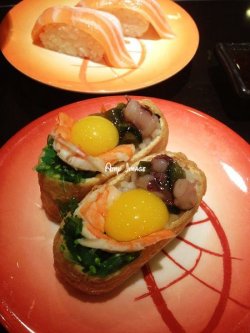 晚上7点过后,人不多,坐吧台。小菜总是必不可少的海藻:爽脆可口螺肉:很嫩,酸酸甜甜土豆泥:奶香十足,百吃不腻墨鱼仔:做法和螺肉一样梅酒:38元,没有加冰,兼容了水果酒的果香甜柔、以及蒸馏酒的浓烈,两样风情交揉一体,遂格外令人沉醉。加勒比卷:各种卷类,最好吃的是芒果味的,加了冰激凌,吃起来冰冰凉凉的。赞三文鱼腩寿司:鱼腩部分总是比较肥沃的,饭团握得也正好。三文鱼刺身:不是刚从冷藏室拿出来的,所以刺身有点软趴趴。生鸡蛋寿司:(我不知道它叫什么) 看起来很好看,实在吃不下了,况且还是一个生的蛋黄……不敢吃不敢吃最后会员卡打8.8折,280+…查看更多