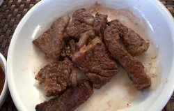 牛舌那点事儿。店面不太好找但装修不错看得出来很用心,蒜香牛舌45成熟最好吃,很薄,很挺香,但没吃出蒜味,是那种韧韧的质地不老很有嚼头,还有红酒牛舌,味美,淡淡的红酒味儿又不失牛舌的鲜美韧劲,很不错的美食,服务员也都很有素质,看起来也舒心。价格有点小贵,很值。…查看更多